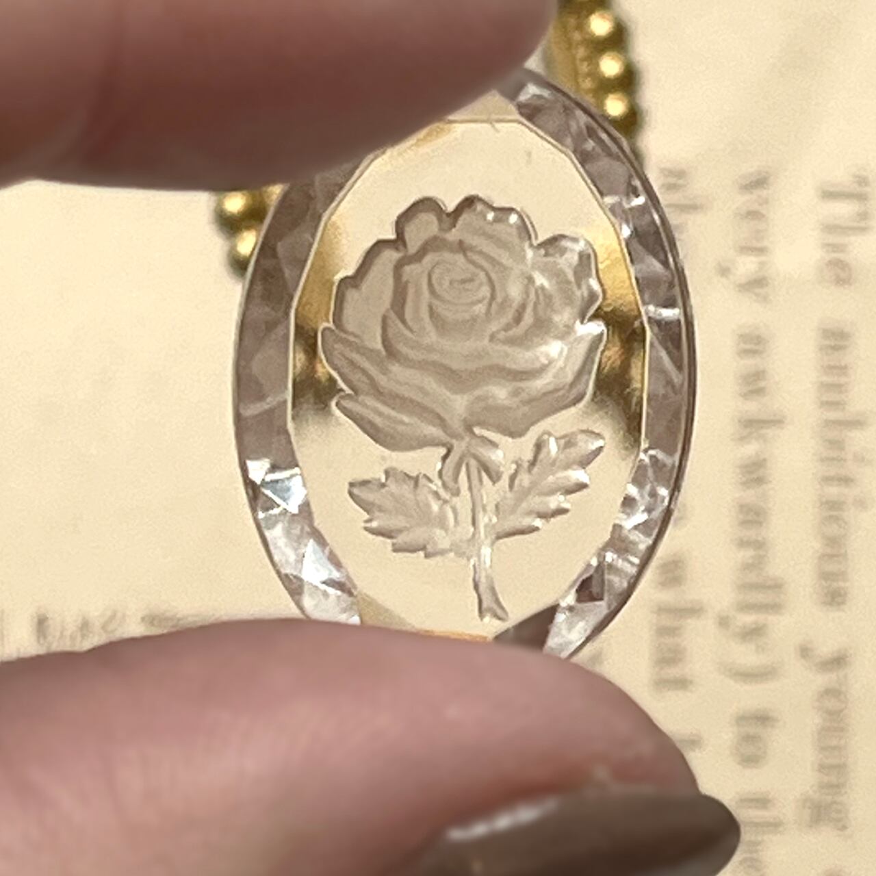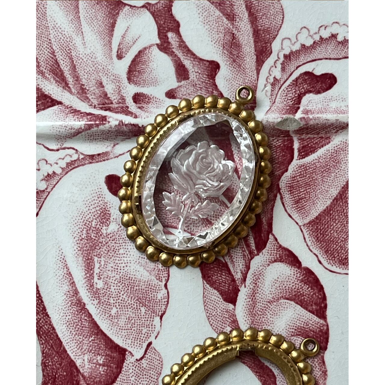 vintage《ルーサイト チャーム》ローズインタリオ/クリア(真鍮フレーム約35mm・中部分約25mm)1個