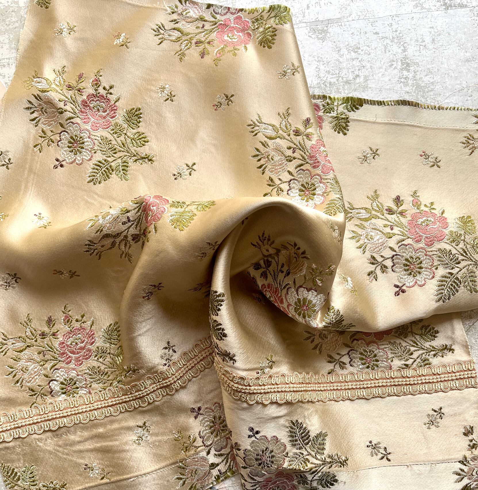 Vintage Fabric生地 シルク サテン織 約50×40cm フランス製