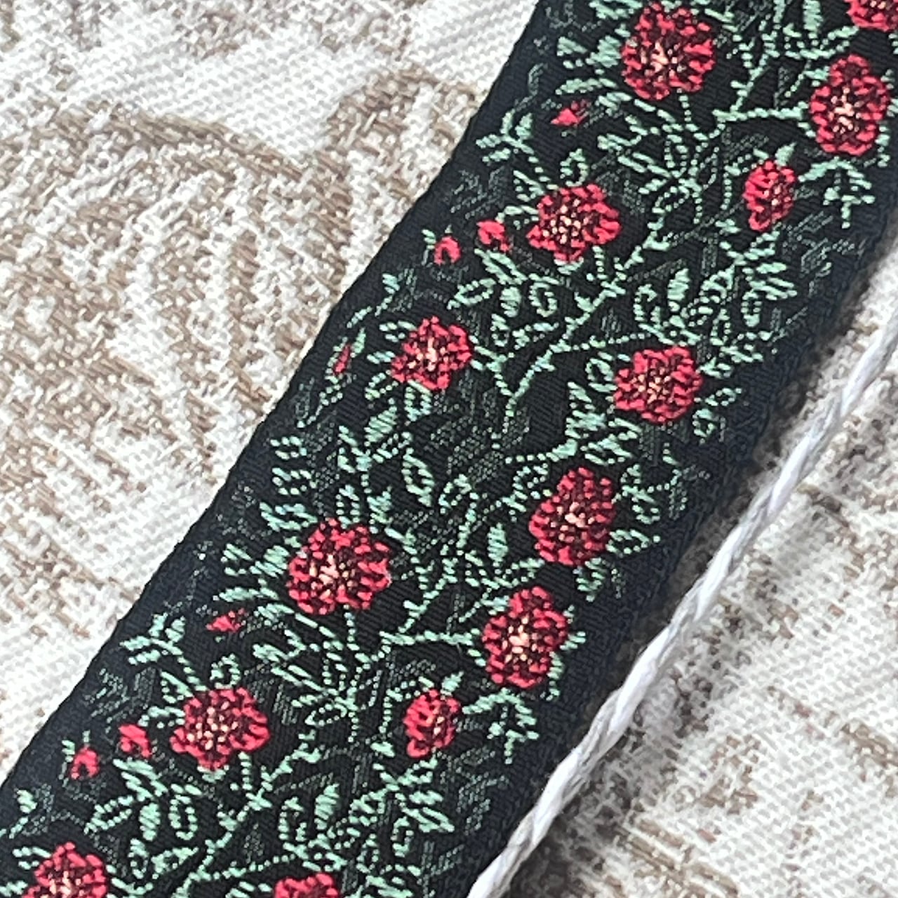 リボン 花柄 刺繍 シャガード 野バラ 黒 カフカ社 ドイツ製 幅26mm 50cmカット 手芸素材