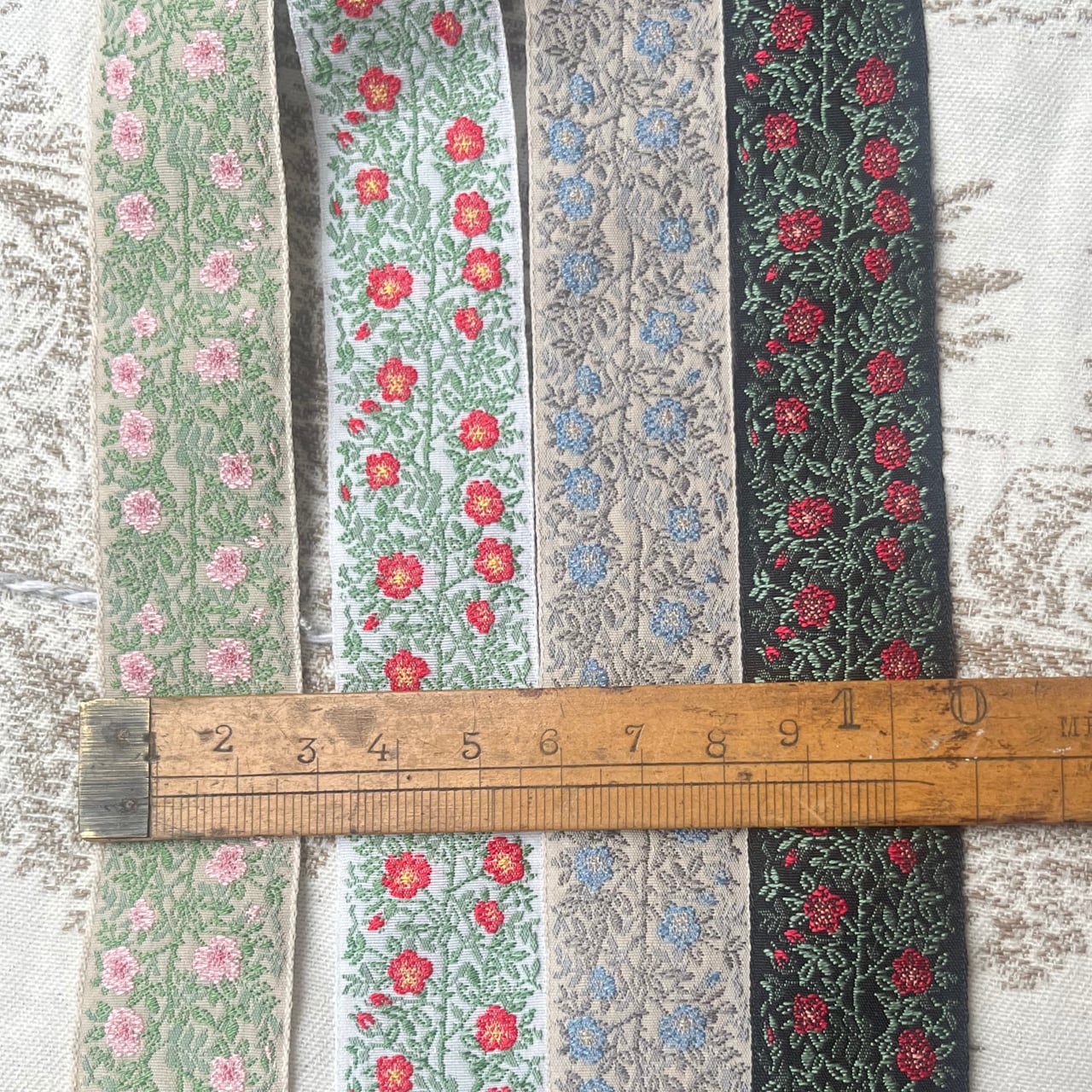 繊細で緻密に織り込まれたジャカード織りの花柄リボンで、