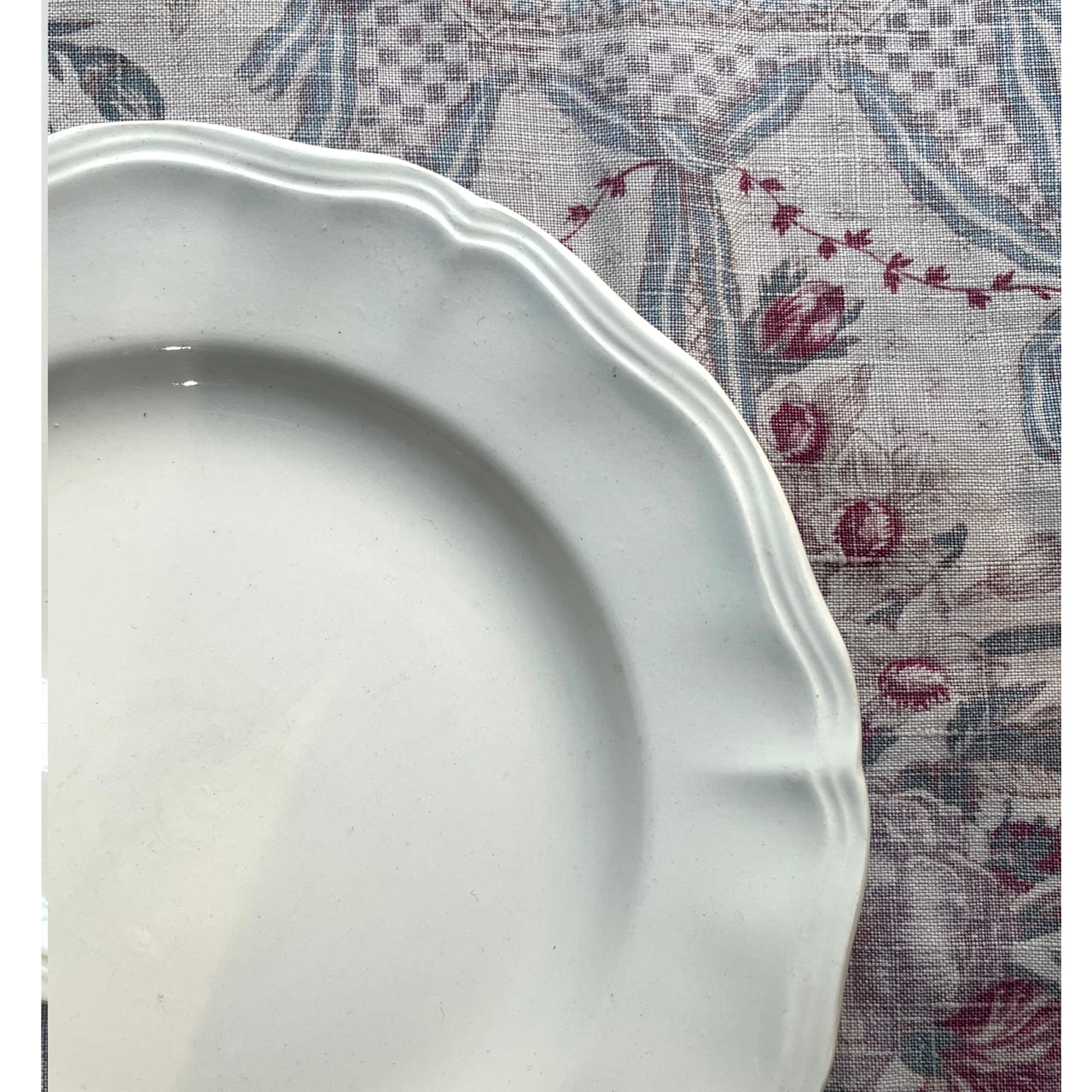 サルグミンヌ窯は18世紀後半にフランス・ロレーヌ地方で創業され、19世紀から20世紀にかけて広く親しまれた陶磁器メーカーです。「花リム」と呼ばれるシリーズは、1920〜1950年頃に製造されていたとされ、家庭用食器とし広く使われていました。控えめなアイボリー色と花びらのような縁取りが特徴で、実用性と美しさを兼ね備えたデザインです。当時のフランスでは日常使いの器として親しまれていましたが、現在では製造を終え、入手が難しくなっています。そのため、現存するものはビンテージ品として高く評価されています。