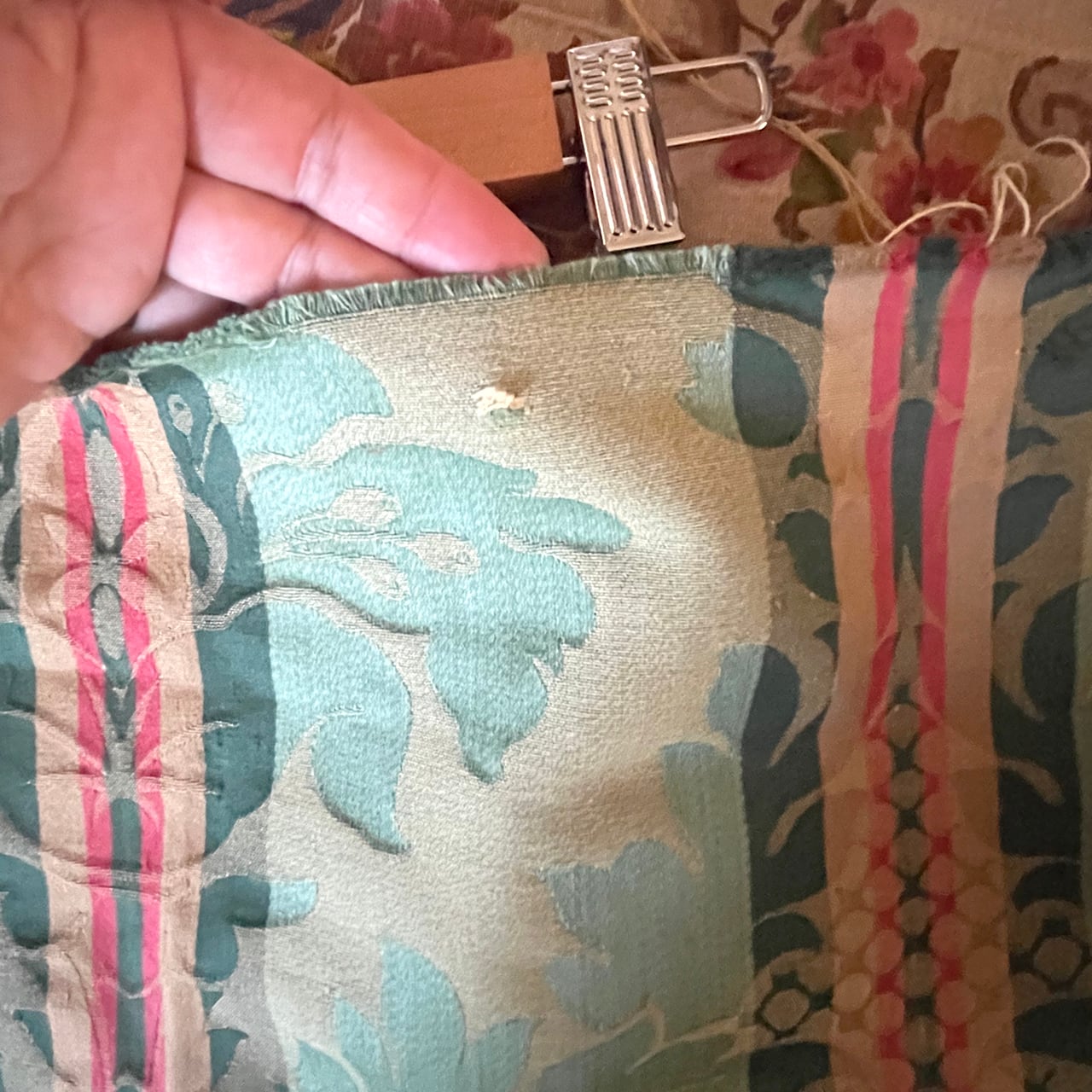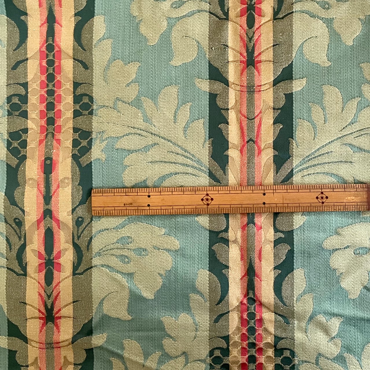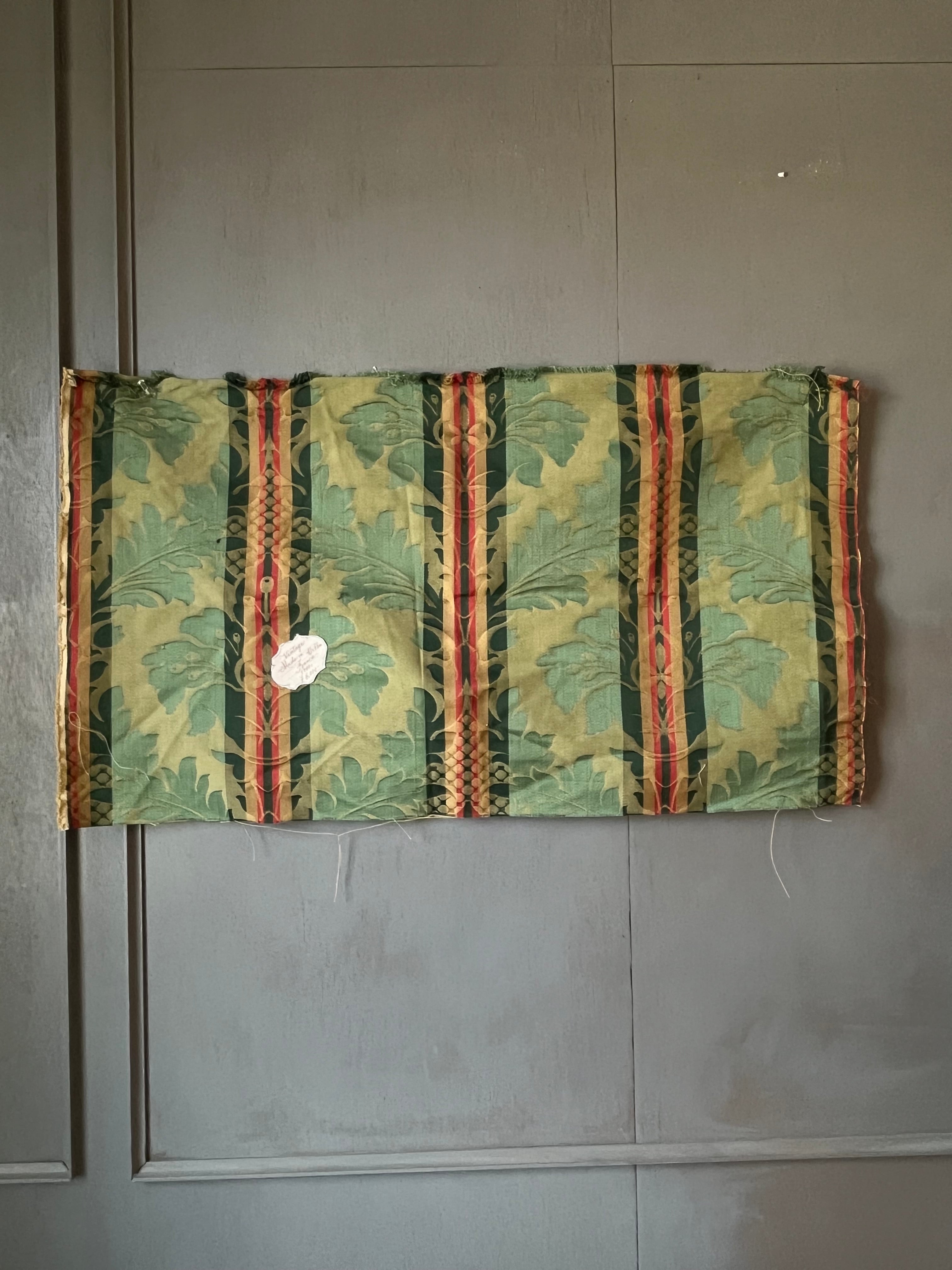 【フランス製 ヴィンテージ 生地】ジャガード織り フレンチダマスク柄 グリーン ファブリック 約68×44cm/アンティーク素材/ハンドメイド・リメイクに