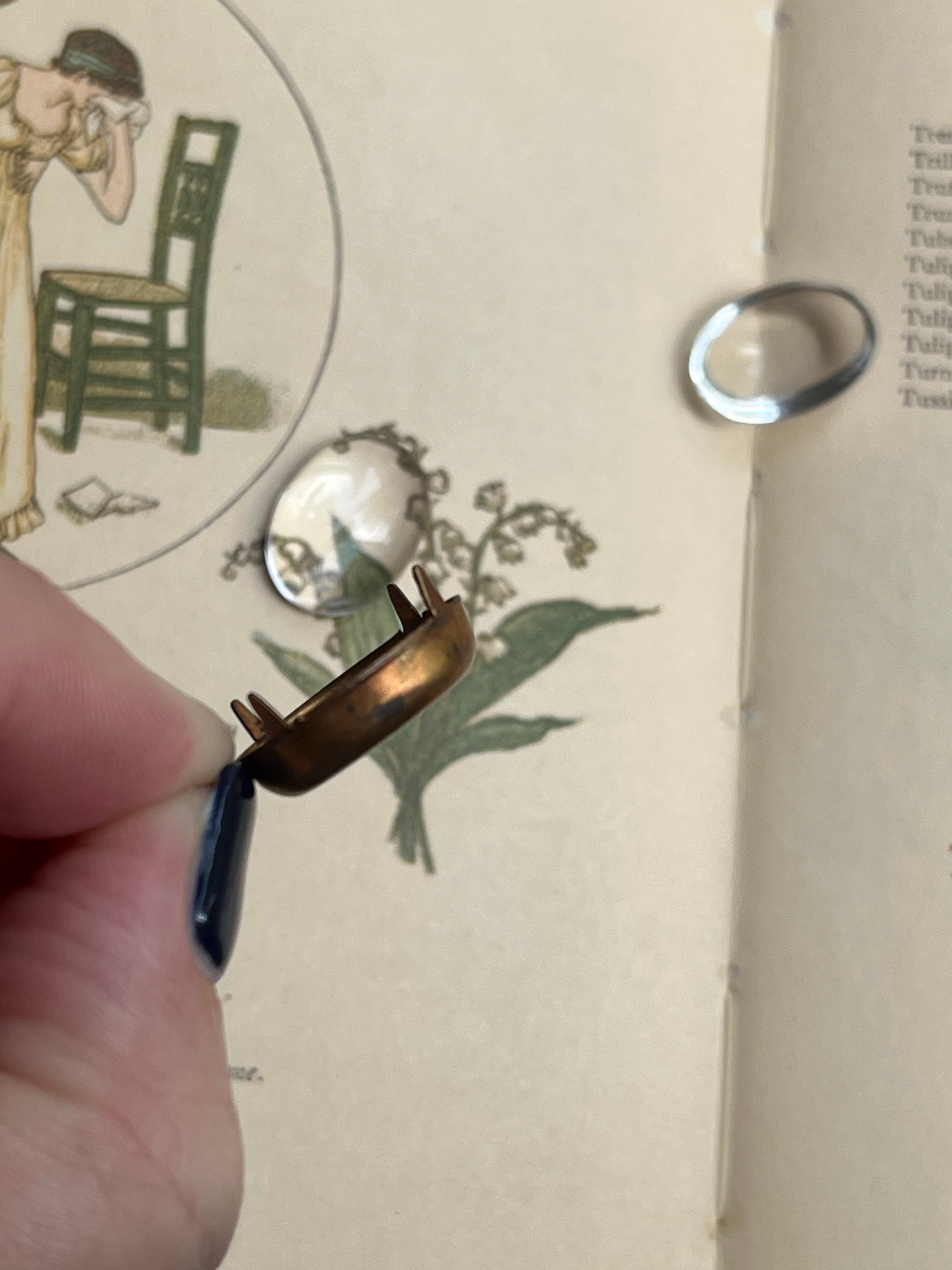 こちらは、真鍮製のオーバル型シャドーボックスチャームです。
