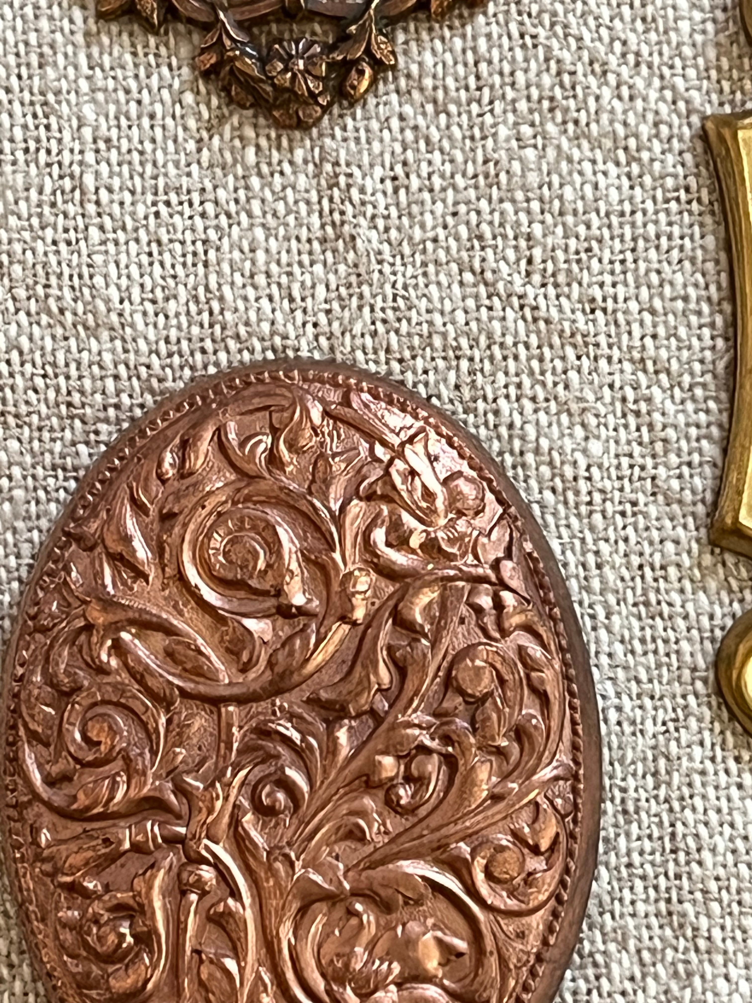 【フランス製ヴィンテージパーツ】真鍮オーバル装飾/中世風アラベスク模様/アンティーク素材・アクセサリーパーツ/約3.8cm・1940年代