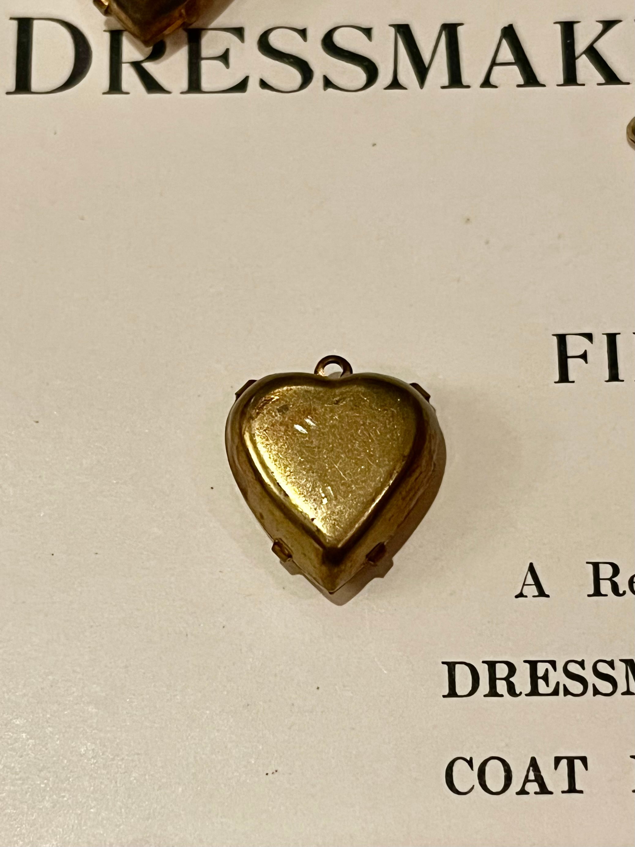 ゴールドアンバーの輝きが魅力的な、ハート型のヴィンテージガラスチャーム。
