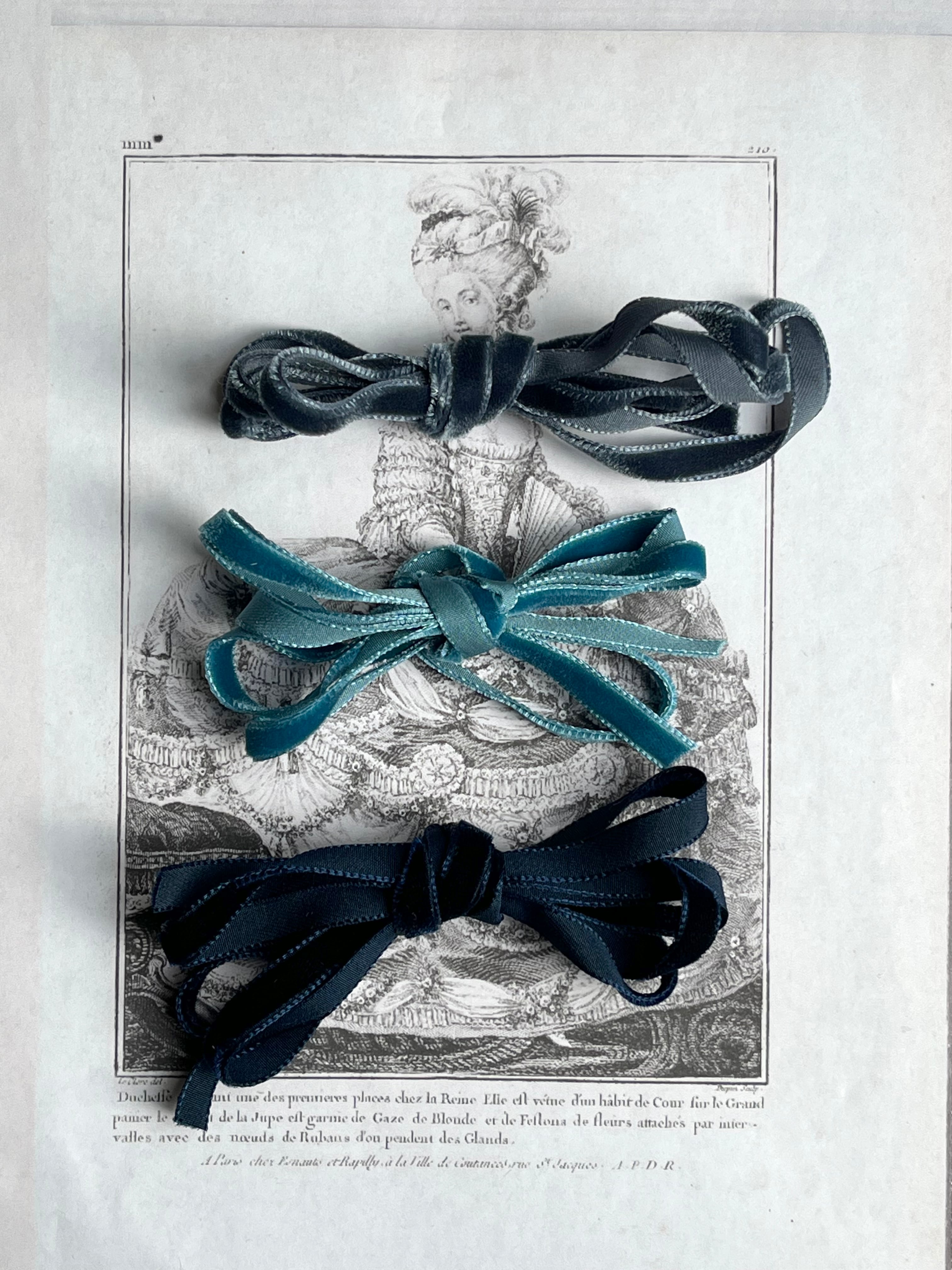 フランス製 ベルベットリボン (7mm ) 4.エマブルー /手芸素材・ハンドメイド・ヘアアクセにも