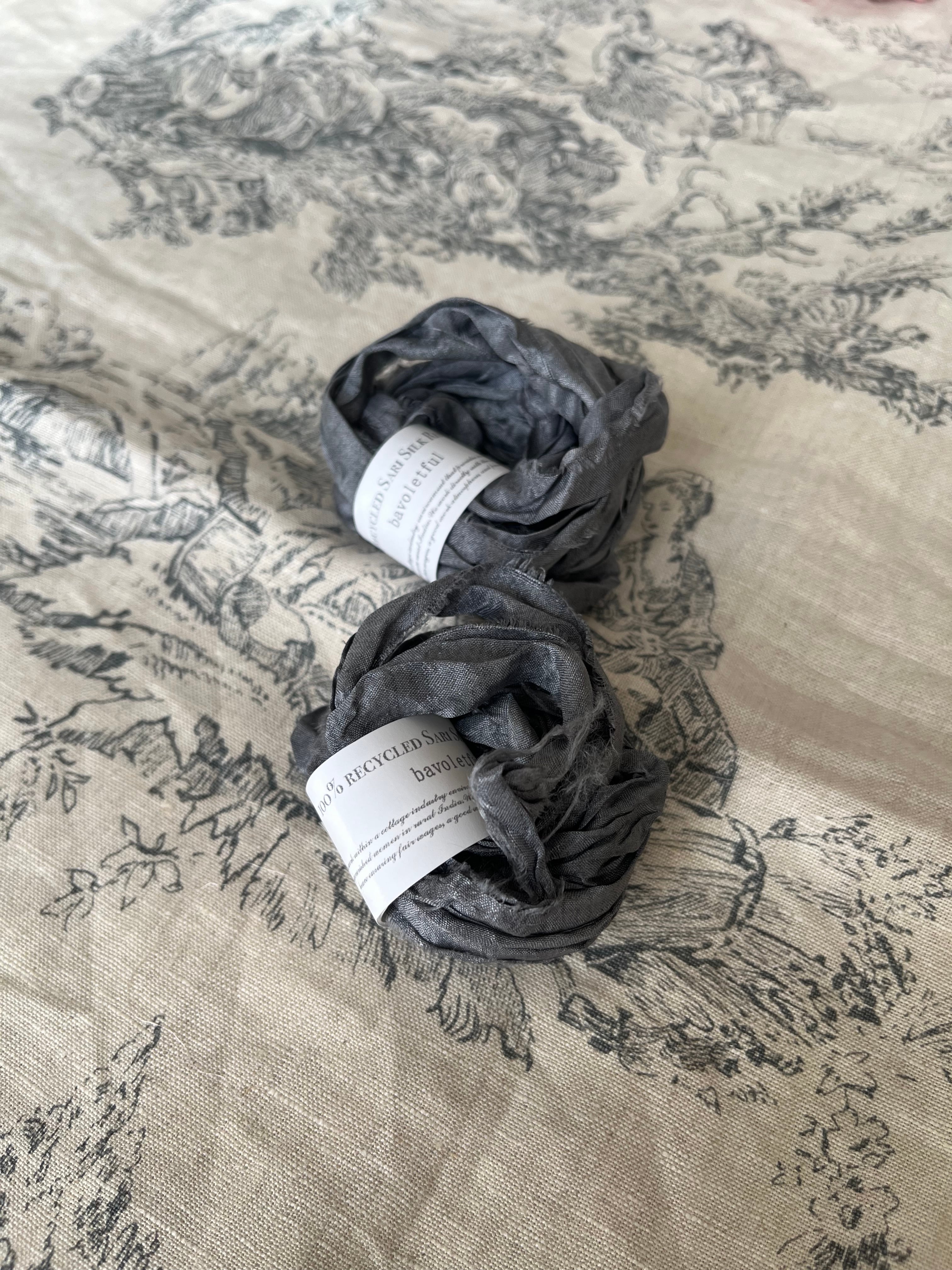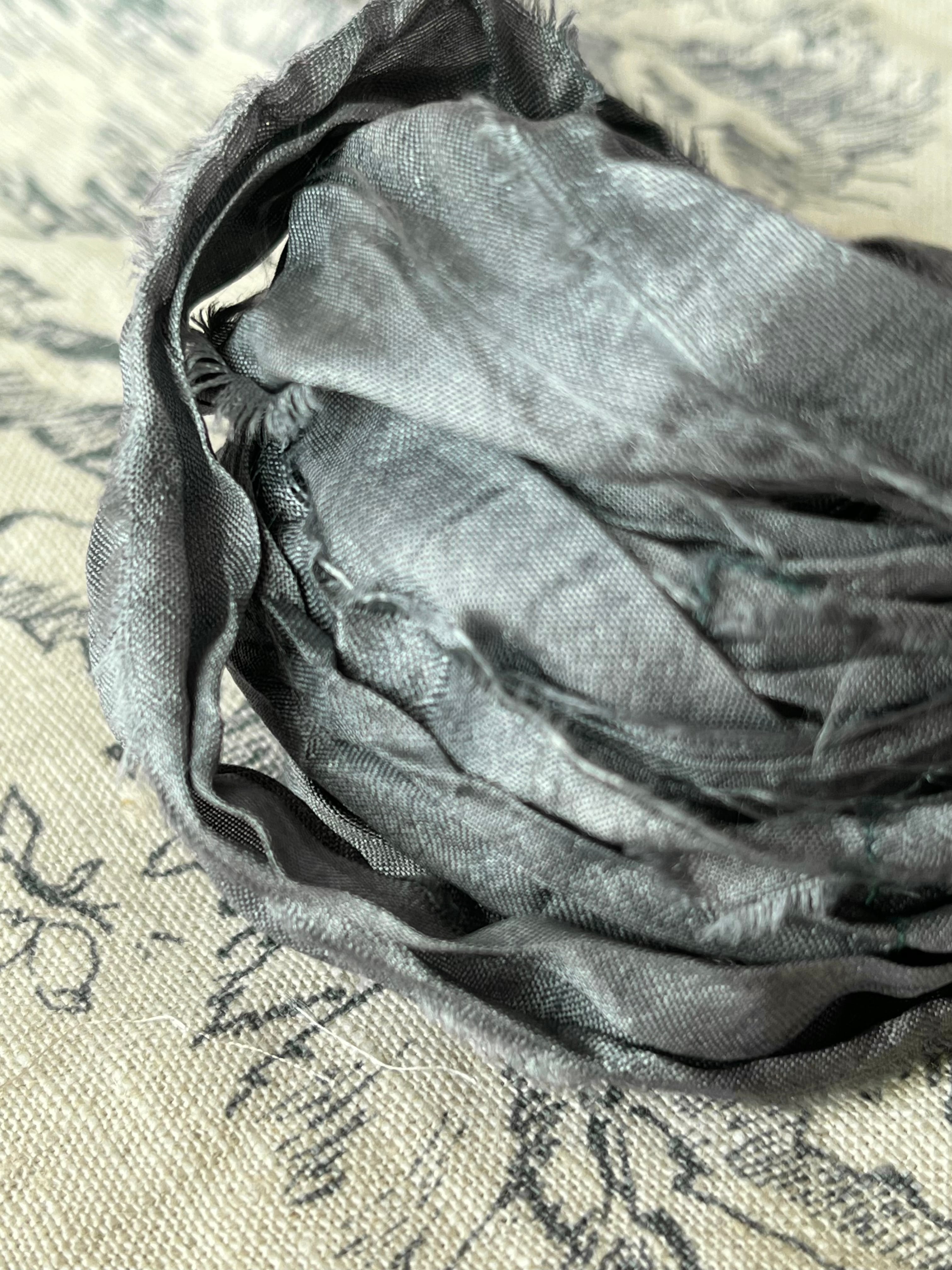 リサイクル サリー シルク リボンRecycled Sari silk ribbon /26-4.スモークディープグレー 3m