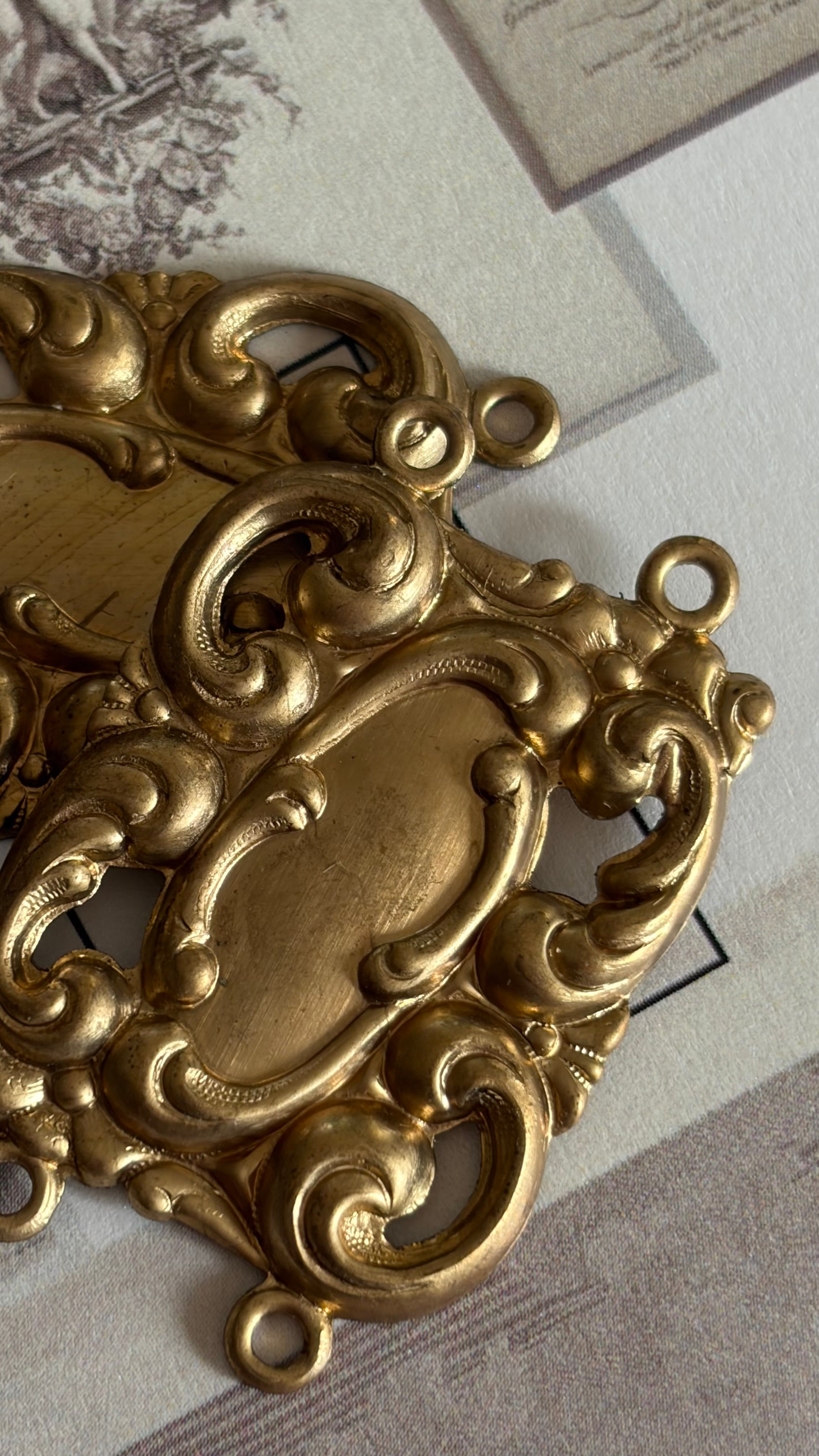 新たに入荷したヴィンテージ真鍮コネクターは、ビクトリアンデザインが施された美しい一品です! 約4cmのサイズ(フープ込み)は、ネックレストップやブレスレット、イヤリングなど様々なハンドメイドアクセサリーにぴったり。真鍮の温かみのある色合いとクラシックなデザインが、あなたの作品に特別な魅力を添えてくれます。