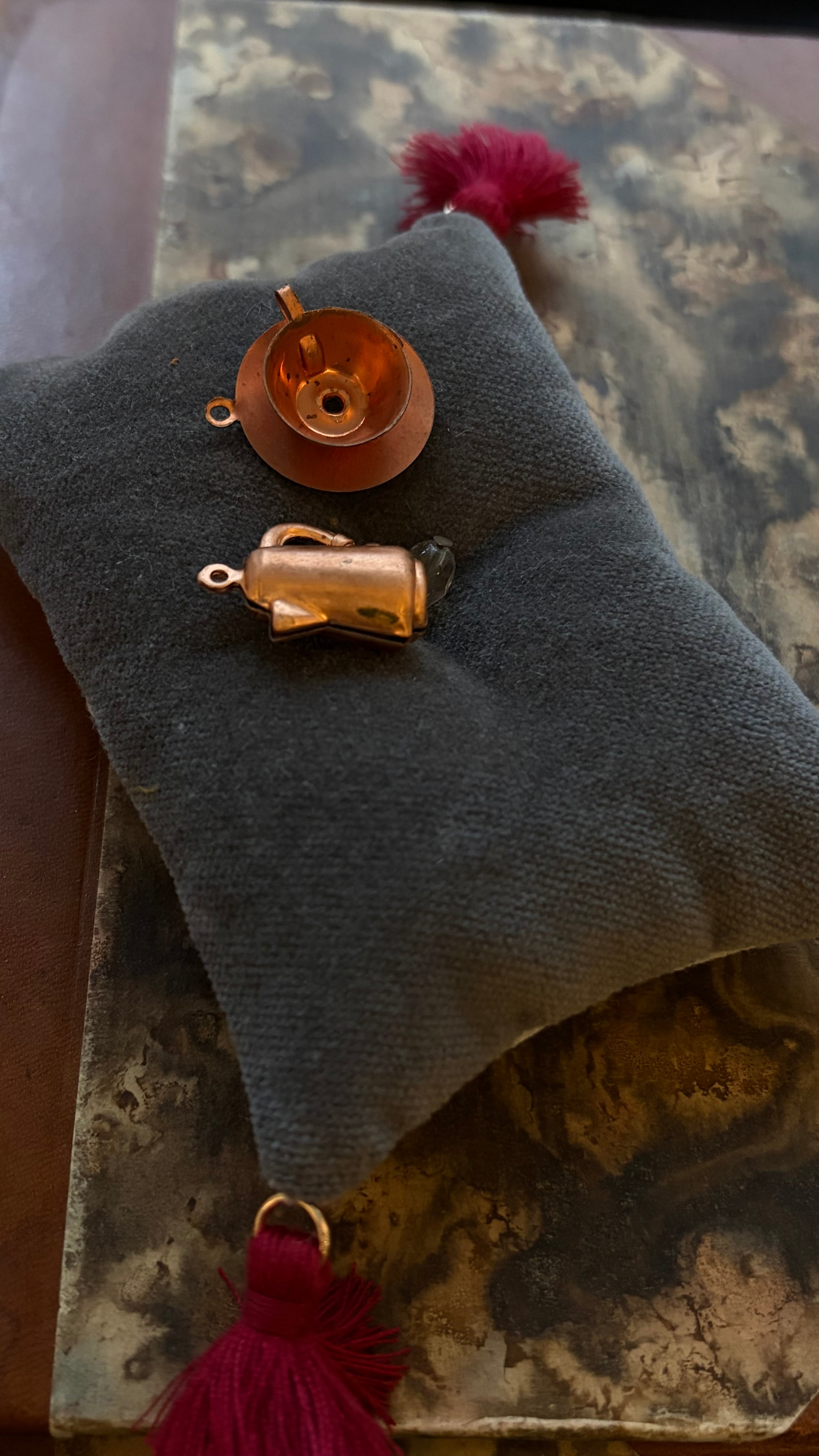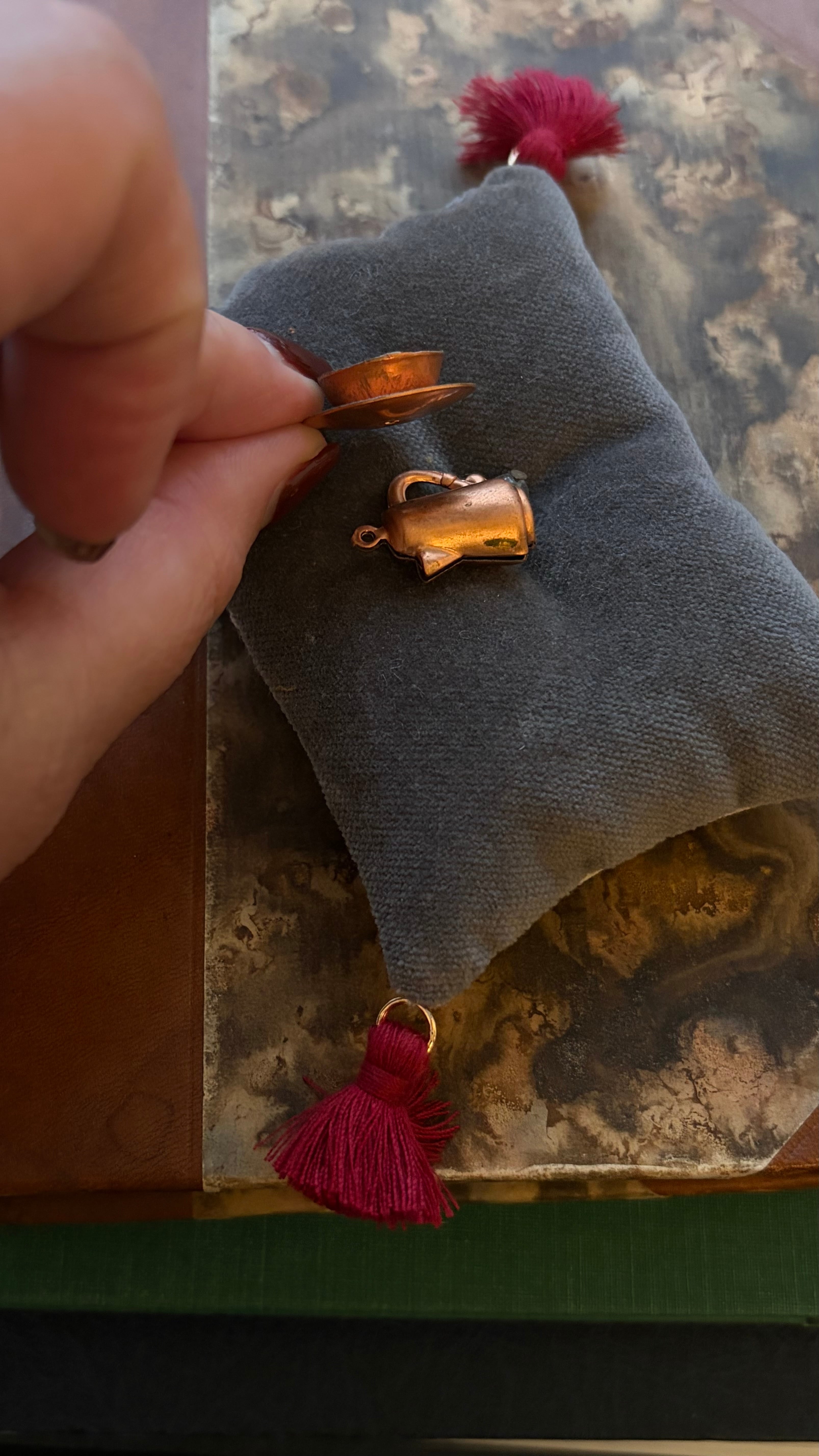 【ヴィンテージ 真鍮 チャーム】 ポットorティーカップ/約2.2cm(フープ込み) どちらか1個 /ハンドメイド用 ネックレストップなど