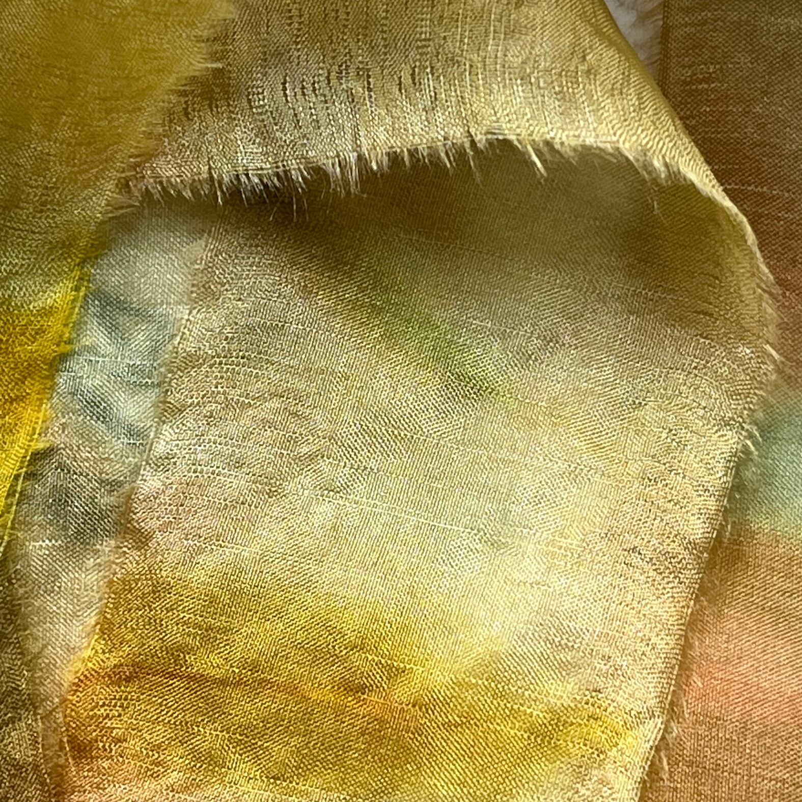 独自の染め柄が施されたこのシルクリボンは、軽くて柔らかい手触りが特徴。