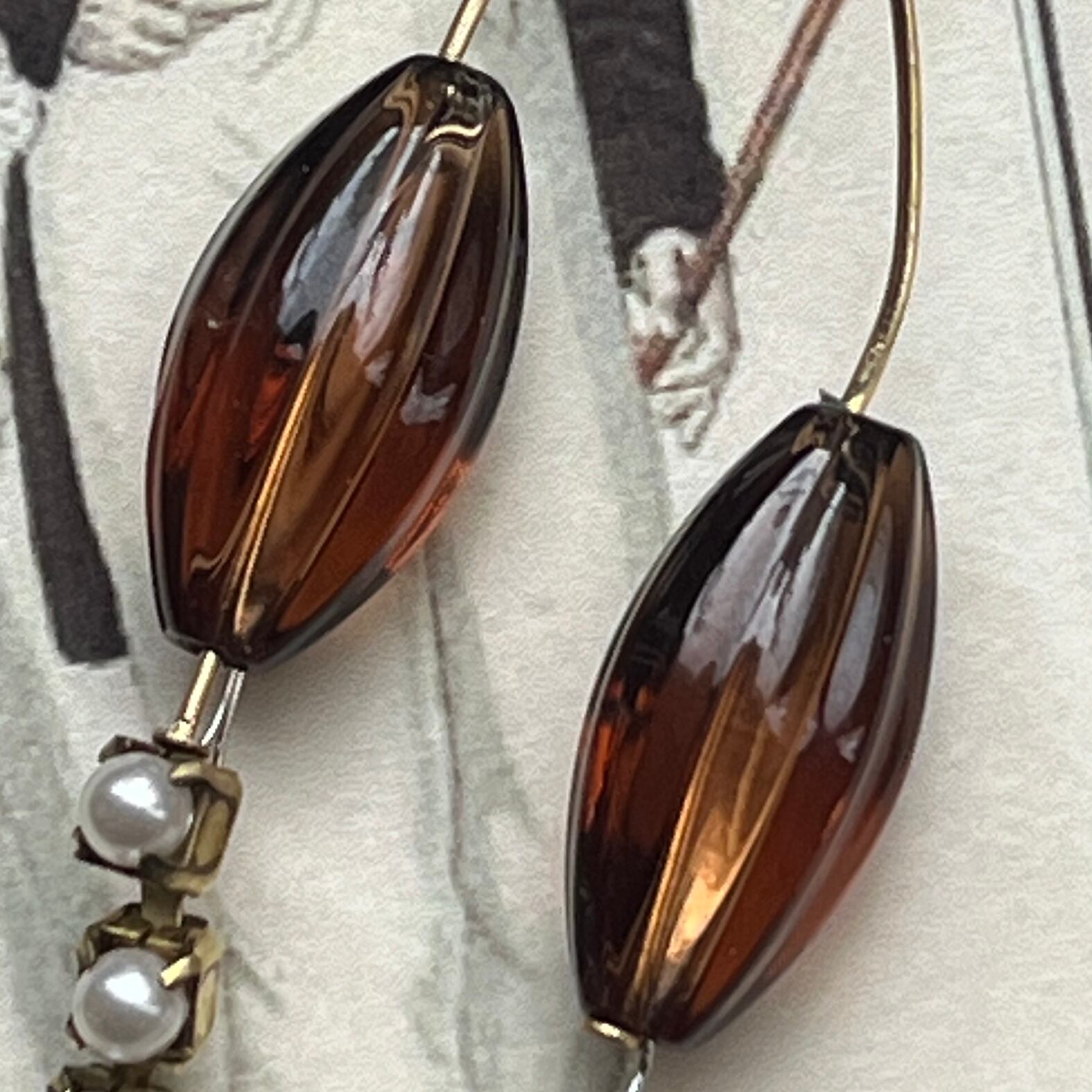 vintage《パール&スワロフスキーsoroban》ピアス /約9.5cm 1set