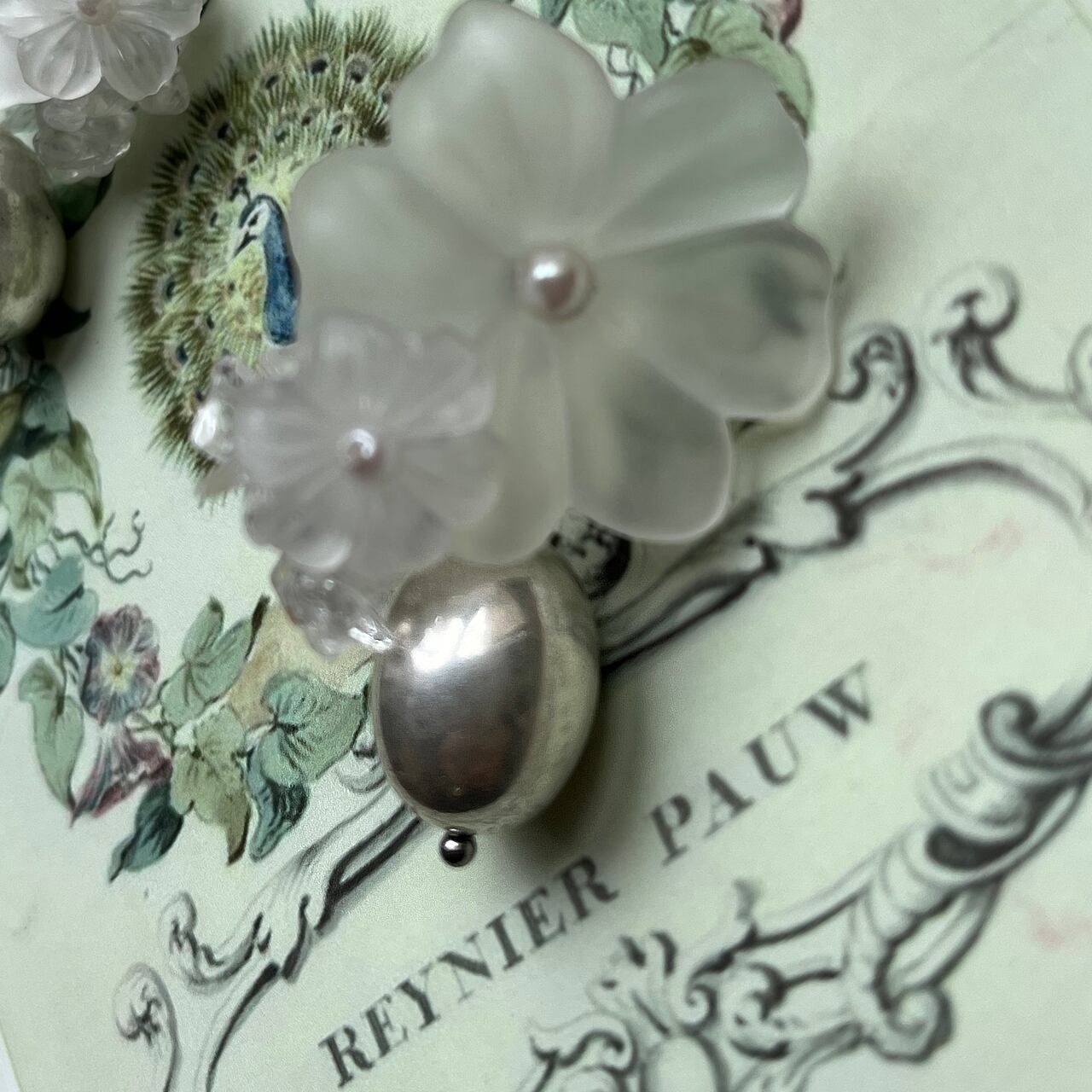 vintage《ルーサイト ビーズ》シルバー/約1.4cm×1cm 2個