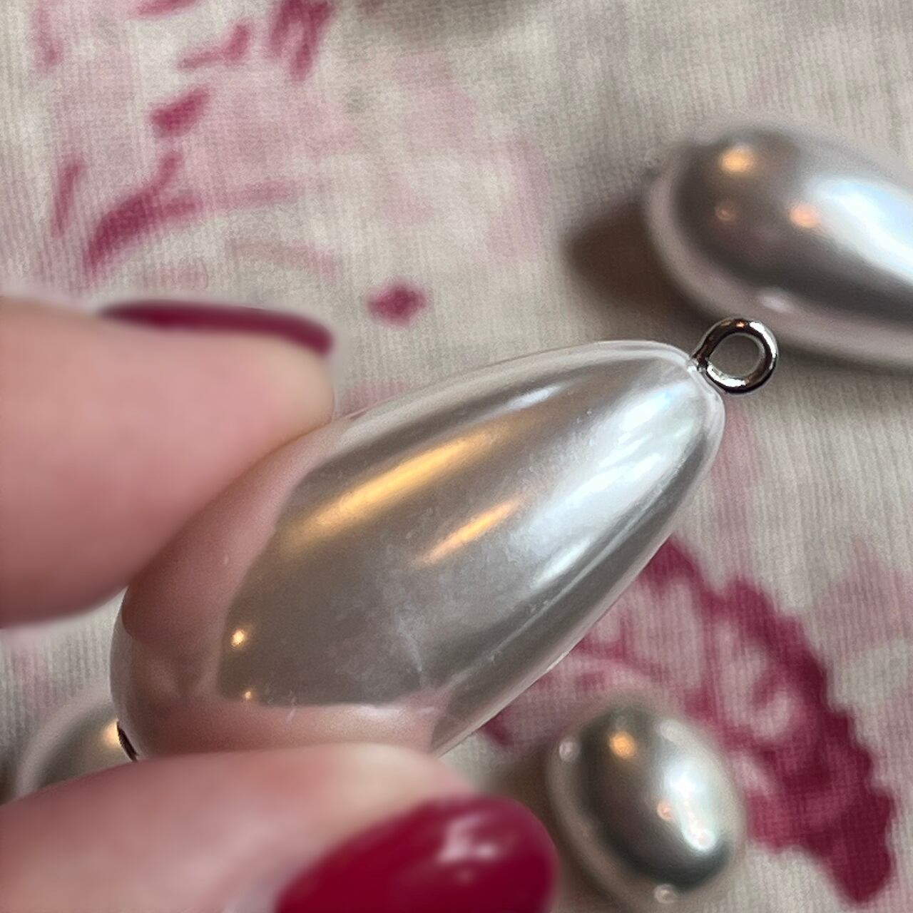 vintage《ガラス チャーム》パールしずく/約3.2cm×1.5cm 1個
