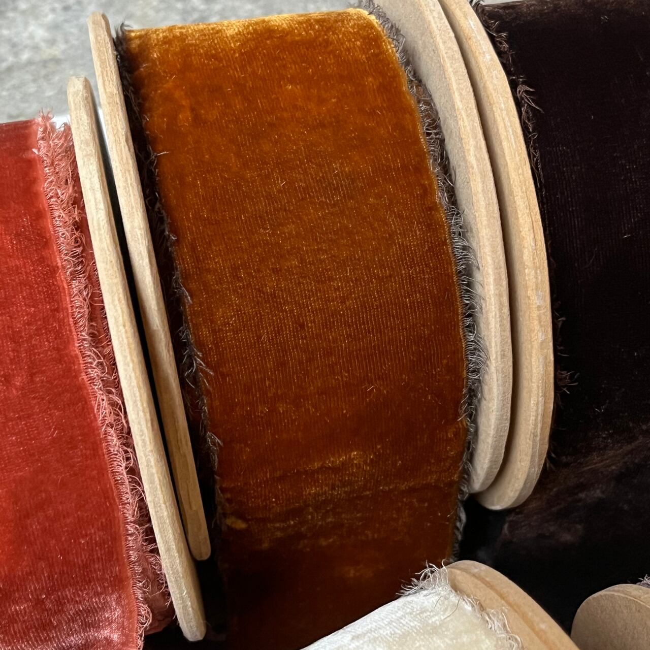 ✴︎2024aw✴︎ Silk シルク混 ベルベット リボン/13.Antique gold(幅/約50mm×1.3メートル)