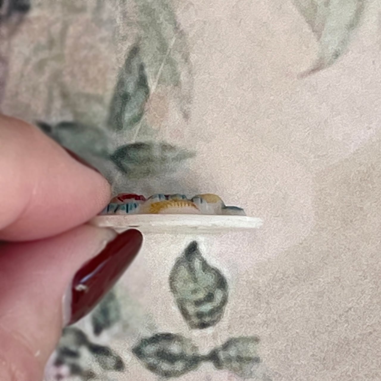 手で色つけされたフラワーバスケットデザインの可憐なカポションです。