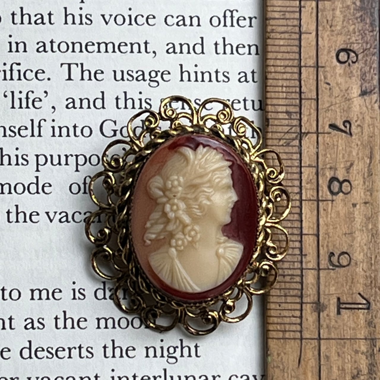 vintage《ブローチ》カメオとフィリグリーフレームのブローチ /約3.4cm x 3cm