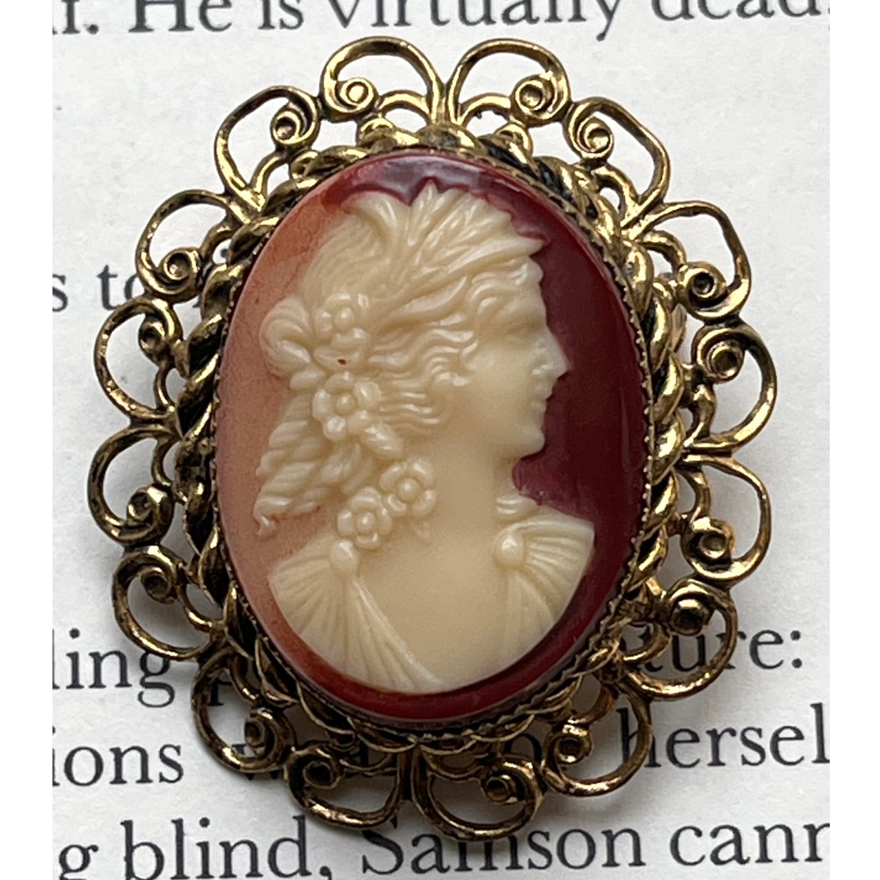 全体としては上品で落ち着いた印象を与えるカメオブローチです。