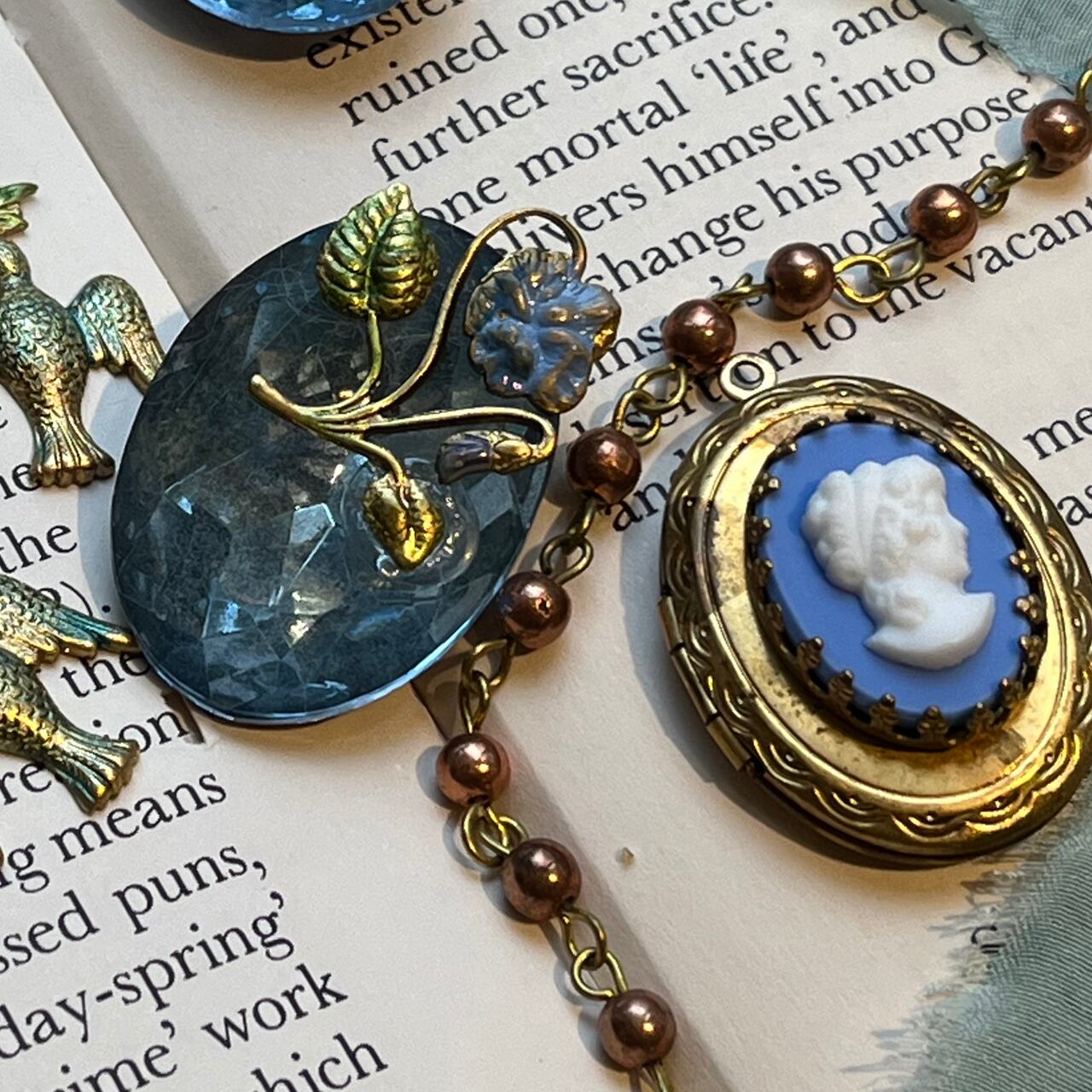 ウェッジウッドのブルージャスパーのようなデザインのガラスカメオが中央についた