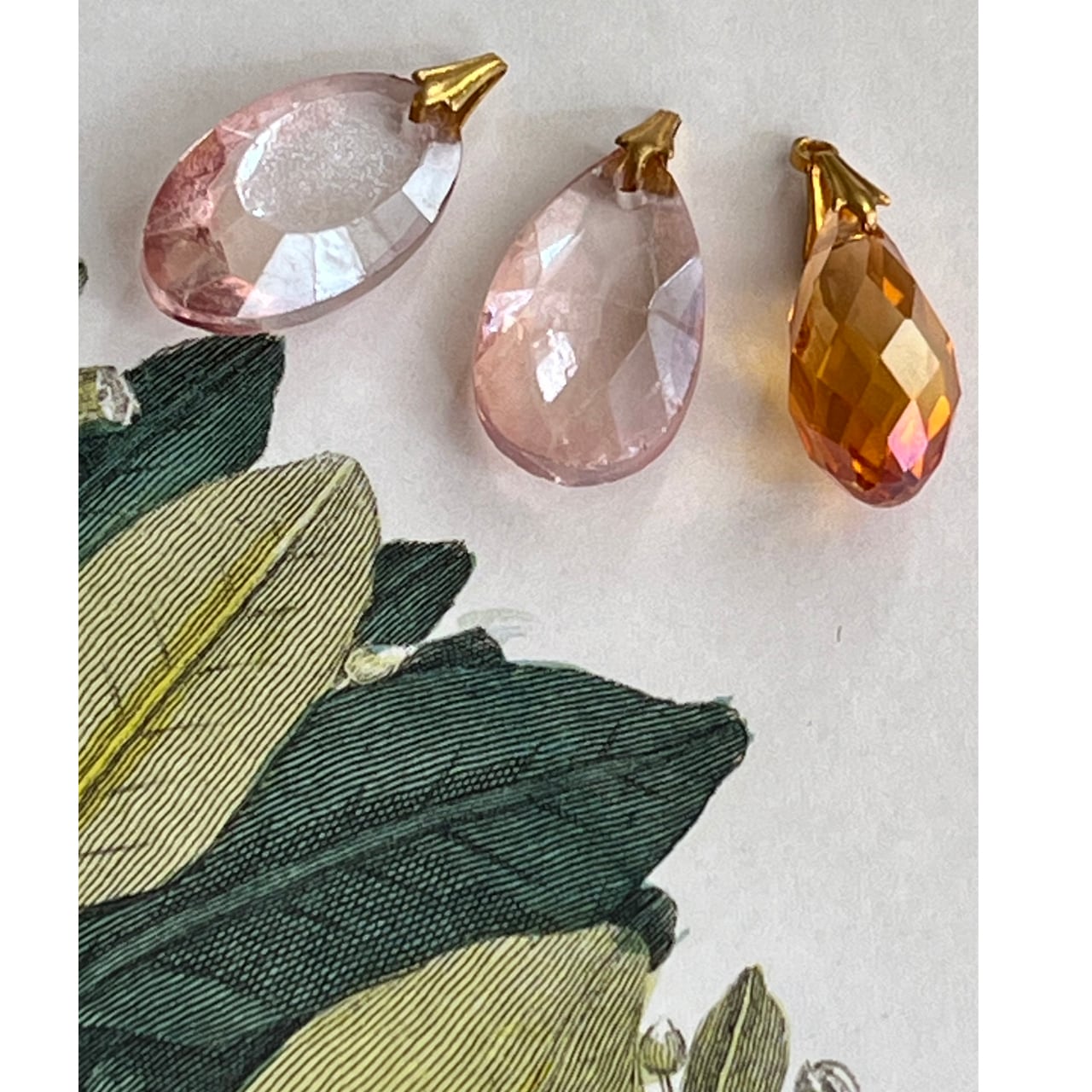 vintage《ガラス チャーム》ファセットカットドロップピンク/約2.6cm(トップ部分も含む)