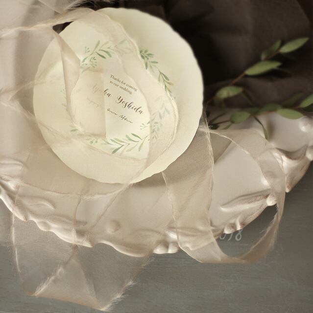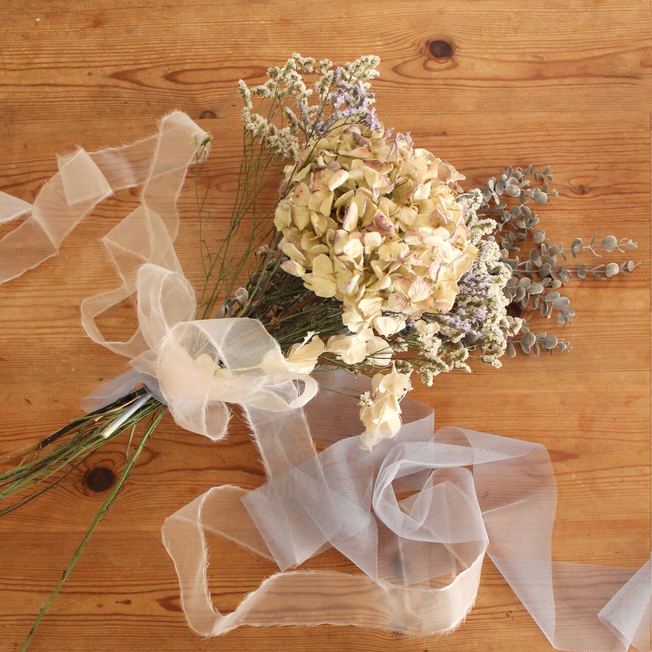 テーブルや会場のデコレーション、ブーケを結ぶリボン、ギフトのラッピングなど、少し特別な時におすすめのリボンです。シルク素材なので張りとシャリ感、そして優しい輝きがあります。